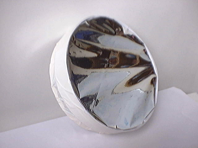 The solar filters were made with AstroSolar film from Baader Planetarium GmbH. A hoop was made out of cardboard that fits snugly around the telescope and the film then gently placed over it. It comes out a bit crinckly but this has no adverse effect on its optical properties.