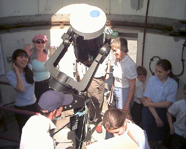 Mid-morning on the day of the transit we had many visitors in the dome of the RHUL obsevatory (photo by Andrew Lowe).