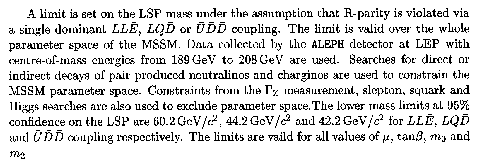 | LSP Mass Limit with a single dominant LLE, LQD or UDD R-Parity Violating Coupling in e+e- collisions at centre-of-mass energies between 189-208 GeV |